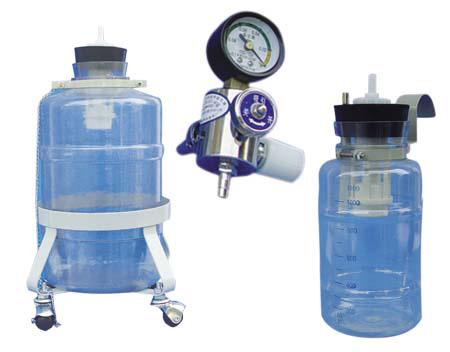 湿化瓶又称为氧气吸入器,分为两种,一种是安装在设备带、设备墙及吊塔上面的,不带减压装置,该种产品又称为墙插试氧气吸入器;另一种是安装在可移动的氧气瓶上,自带减压装置,它们的特点如下: 1、接插式氧气吸入器: 主要应用于设备带、医疗设备墙、吊塔等供气终端 适用气体:氧气 插头有公制和英制两种可供选择 工作压力:0.25MPa 带湿化瓶 流量范围:0-10L/Min 2、气瓶式氧气吸入器:  主要适用于氧气瓶 适用气体:氧气 带2&rsquo&rsquo压力表 输入压力:15Mps 设定压力:0.25Mpa 流量范围:0-10L/Min 吸引器主要用来收集病人的痰、脓、血等污物。它主要与负压吸引终端连接。它具有以下特点: 主要应用于医疗设备带、设备墙、吊塔等供气终端 适用气体:负压吸引 具有溢流安全阀,可防止吸入的污物吸至负压调整器内或负压管路系统内。